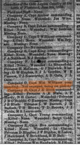 - Captain J.E. Ritch appears on the list of missing men from Company H, which he was commanding
